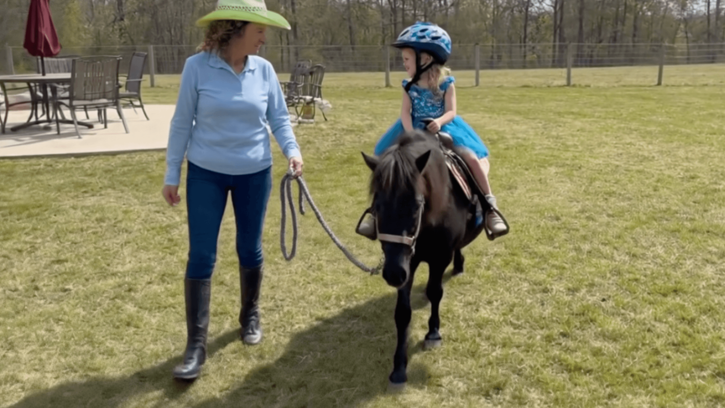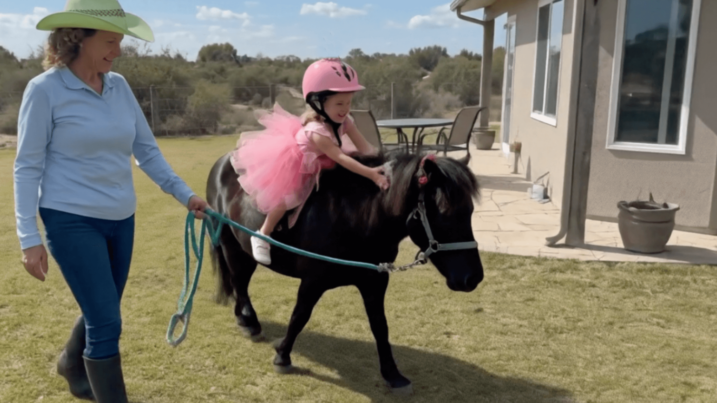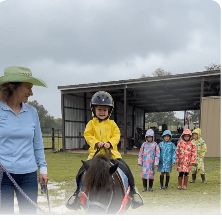 A pony party is a calm, supervised experience for young children.